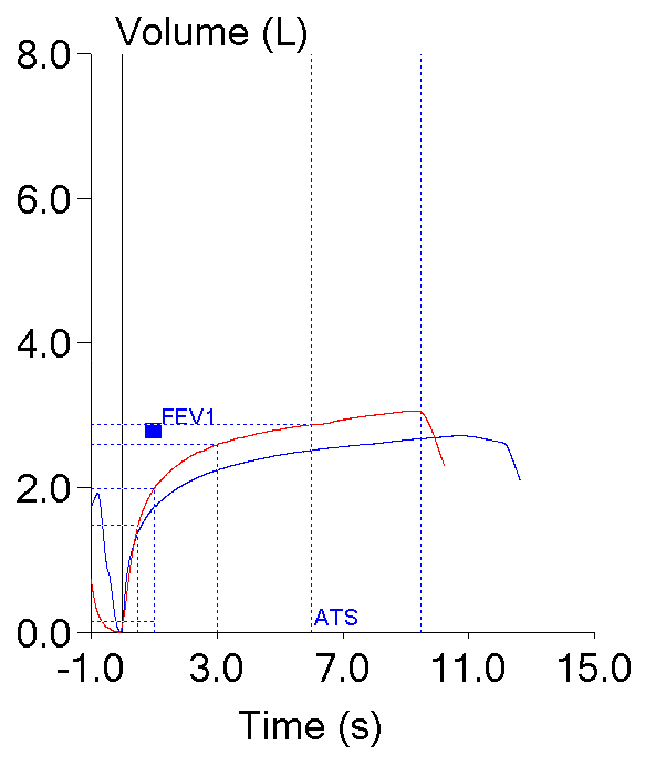 Finally though, I’ve begun to wonder if the basic premise of getting both the FEV1 and the FVC from the same test maneuver is really correct. The standard spirometry maneuver is good for getting the best FEV1 but often so-so in getting the best VC. An SVC maneuver on the other hand, is good for getting the best VC, but very poor in getting the best FEV1. Is it time that we re-thought routine spirometry and obtained the FEV1 and VC from different maneuvers rather than just the one? But I’ll save discussion of this topic for another time.