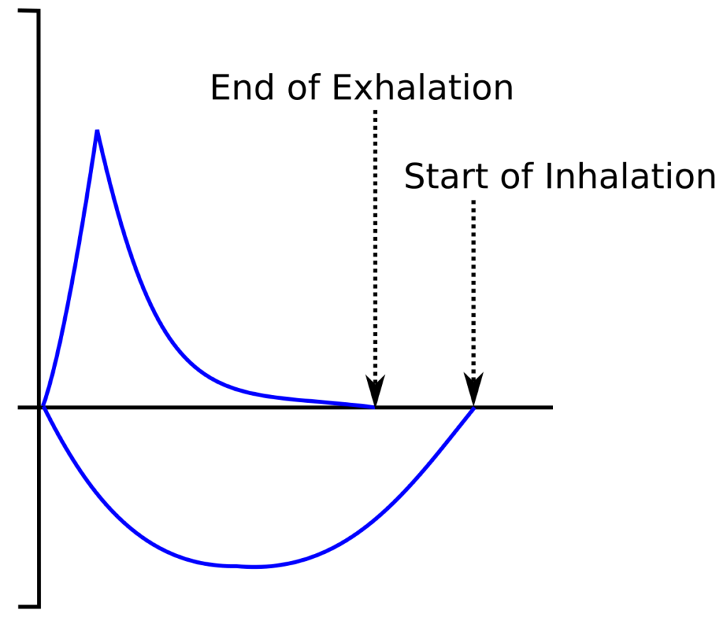 | Exhaled volume > 95% Inhaled Volume | B | ↓ |