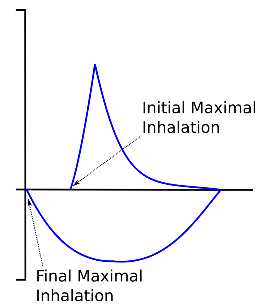 All of the ATS/ERS criteria that apply to the FVC are concerned with an inadequate exhalation and there are no criteria that address an inadequate inhalation. This is mostly because detecting an inadequate inhalation is quite difficult. Although there are several signs that are suspicious for this problem the only circumstance in which this clearly shows is when a maximal inhalation is performed after the maximal expiratory maneuver and the final inhalation has a larger volume than the initial one. Many test systems will measure this final maximal inhalation as the FIVC, although this value is not often reported.