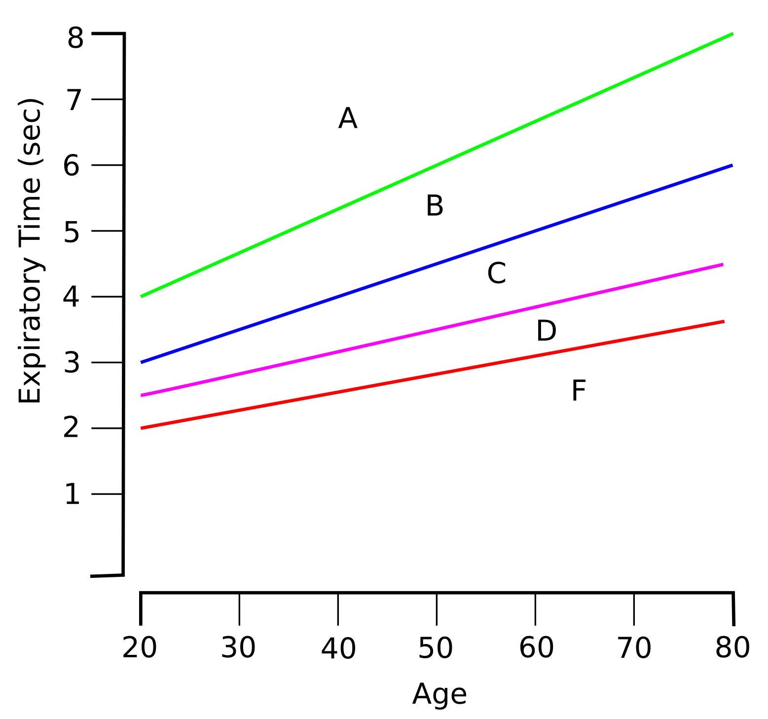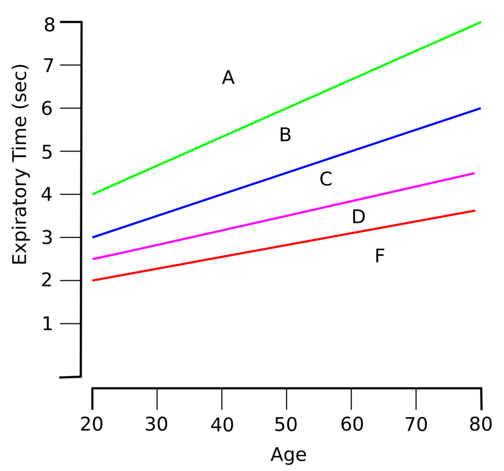 I further suggest that the age-adjusted expected expiratory time should be multiplied by the appropriate factor and then scored by the percent of the actual expiratory time:
