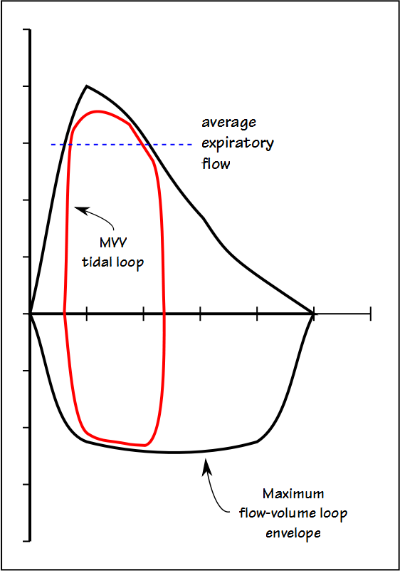 This means that increasing the MVV tidal volume comes at the expense of decreasing the average expiratory flow rate, which in turn will decrease the MVV.