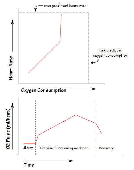 Chronotropic index and O2 pulse can be windows into stroke volume and cardiac output and for this reason I would strongly recommend that they are calculated and that graphs of heart rate versus VO2 and O2 pulse versus time be included when a cardiopulmonary stress test’s results are evaluated.