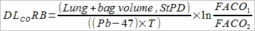 is actually the Krogh factor, or K. This has been described as the flux of CO across the alveolar membrane or the rate constant for CO uptake but it is more accurate to think of it as the rate at which the concentration of CO decreases in the lung during breath-holding. A simpler way to write the equation is therefore: