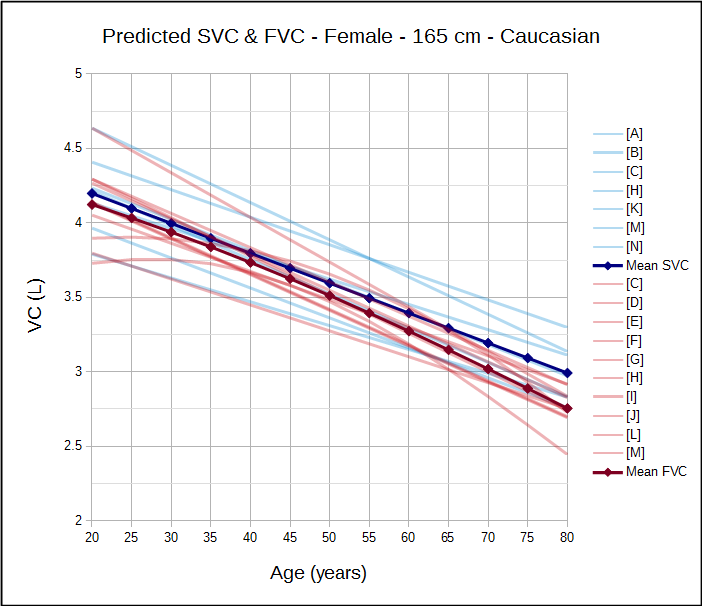 [M] Roberts CM, MacRae KD, Winning AJ, Adams L, Seed WA. Reference values and prediction equations for normal lung function in a non-smoking white urban population. Thorax 1991; 46: 643-650.