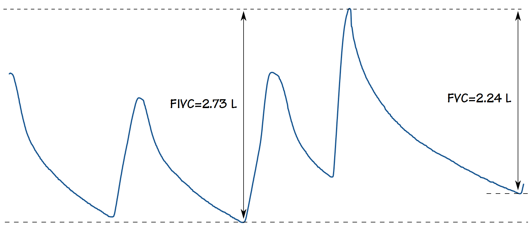 Strictly speaking I doubt that the FIVC volume derived from the more complete volume-time tracing meets the official criteria for an inspiratory vital capacity, particularly since it occurs over more than one breath. Even so, it is “real” and the gas trapping it shows is an important clinical finding. Even more importantly I don’t know of any test systems where this would have been evident.
