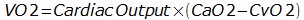 Note: CaO2 and CvO2 refer to the oxygen content (in vol%) of arterial and venous blood respectively. I’ve frequently seen CaO2 and CvO2 described as the concentration of oxygen in the blood but although this may be semantically correct I feel it is imprecise because it is easily confused with the partial pressure of oxygen or oxygen saturation when it is actually a function of both of these properties: