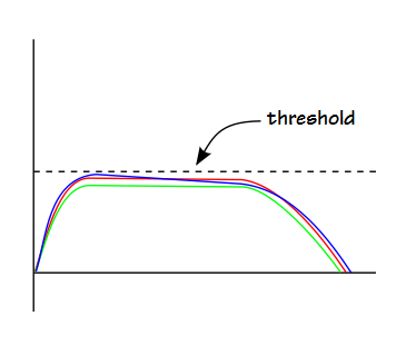 Most importantly, however, when a patient performs an FVC sub-maximally it is very difficult to do this reproducibly. Like anybody else, an individual with tracheomalacia will have a certain amount of variability in their spirometry efforts, nevertheless there will be a threshold flow rate that their efforts should not exceed. When efforts are maximal, the maximal flow rates in the flow-volume loops should cluster near the threshold.