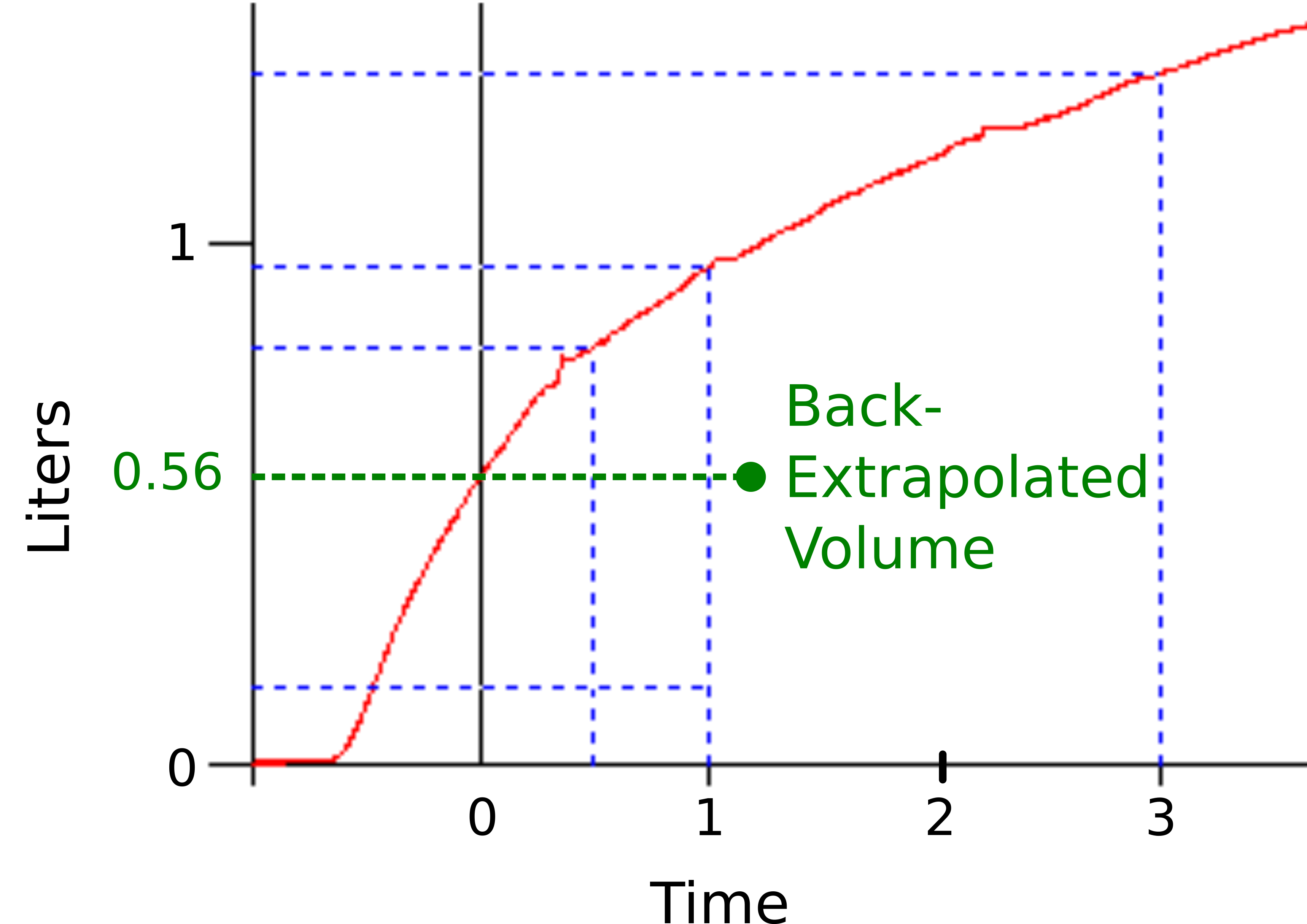 The back-extrapolation algorithm has it’s basis in the volume-time curve. Back in the day, you used a ruler to find the highest slope of the volume-time curve and used it to extrapolate backwards to the “real” beginning of the expiratory effort.