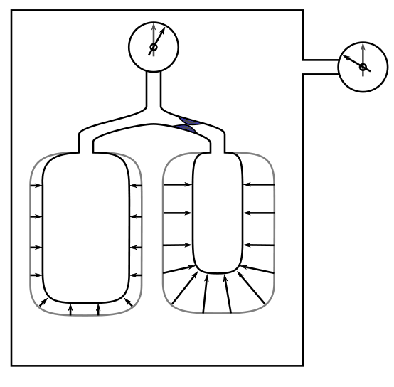 This measurement process can work well but an absolutely critical assumption is that the pressure measured at the mouth is the same as the average pressure inside the lungs. For patients with normal lungs this assumption is reasonably correct, but when lungs are diseased this is not necessarily the case at all. In obstructive lung diseases in particular the disease processes in the lung are often not homogeneous. This can cause different parts of the lung to go through different volume and pressure changes during the measurement maneuver. As long as the pressure measured at the mouth is equal to the average pressure inside the lung then the measured lung volume will be correct.