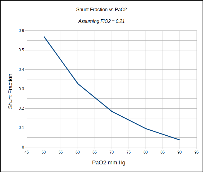 I was reading an article recently that made an off-hand reference to the 100% oxygen shunt fraction test. Results from the test were included in the data analysis but the equations the researchers used were not presented nor were they referenced, nor was the procedure described. This is probably because the shunt fraction test and its equations are very much old-school pulmonary physiology but even if the subject is probably covered at one time or another in physiology classes I suspect that some of the issues involved in the calculation are not as well understood as they should be.