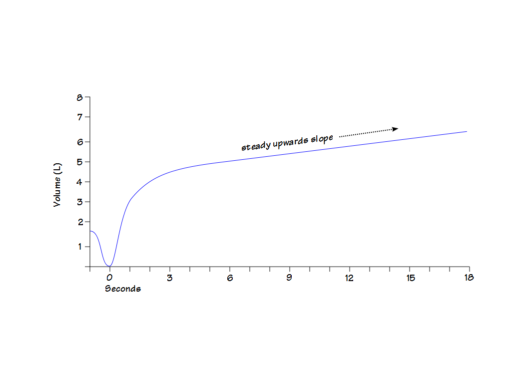 When this happens the FVC is certainly underestimated and since the expiratory effort didn’t start from a maximal inhalation, the FEV1 is likely underestimated as well. Sometimes however, the indications that the patient didn’t take a full inhalation are more subtle.