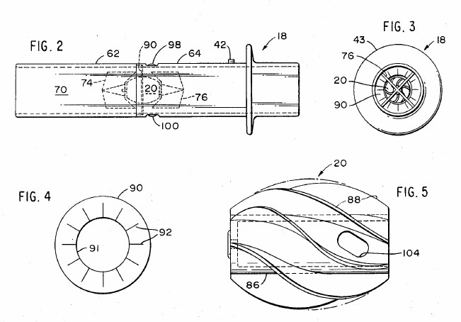 During the early 1980’s a turbine spirometer was developed and marketed that used swirl or deflector end-plates (the equivalent of fixed fan blades) to cause airflow to rotate helically through the body of the sensor.