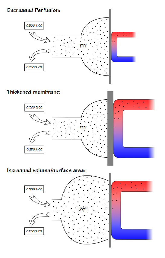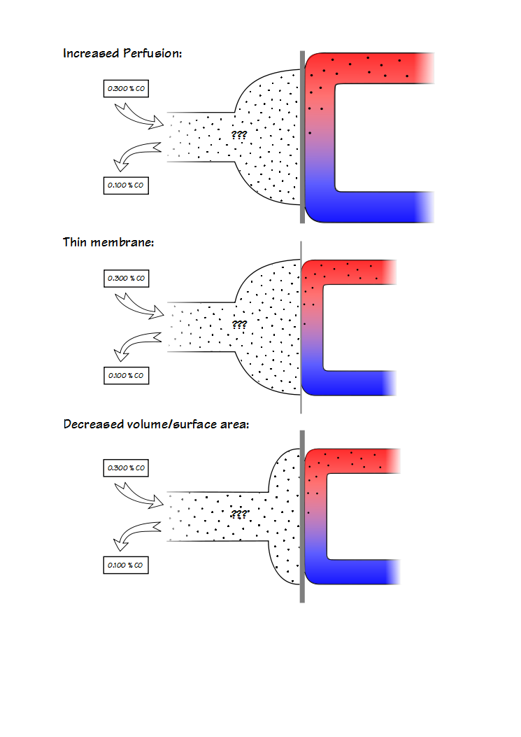 A high KCO can be due to increased perfusion, a thinner alveolar-capillary membrane or by a decreased volume relative to the surface area. Because it is not possible to determine the reason for either a low or a high KCO this places a significant limitation on its usefulness.