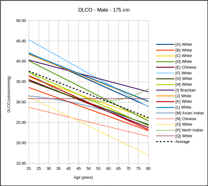 First, there are a variety of DLCO reference equations. The ATS/ERS guidelines recommends that PFT Labs pick the reference values that most closely matches their patient population but how this is done is left to individual labs. There are at least a couple dozen DLCO reference equations to choose from and probably about a half dozen of these are in common use in PFT labs around the world.