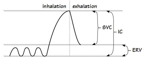 IC and ERV are smaller than the SVC (and SVC = IC + ERV). If the patient does not exhale completely however, the SVC will be lower than the IC and the ERV will be negative (and oddly enough SVC will still be equal to IC + ERV).
