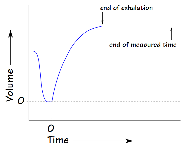 The reported expiratory time isn’t always accurate, though. When a patient stops exhaling during an FVC effort but doesn’t inhale our test system will sometimes continue to time the effort. When this happens the volume-time curve becomes flat and the expiratory time is reported with a falsely high value.