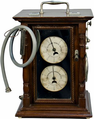 “Hats-Off” Spirometer. Blowing in the spirometer caused the hats to tip. The photo is from a catalog, None are known to exist today.